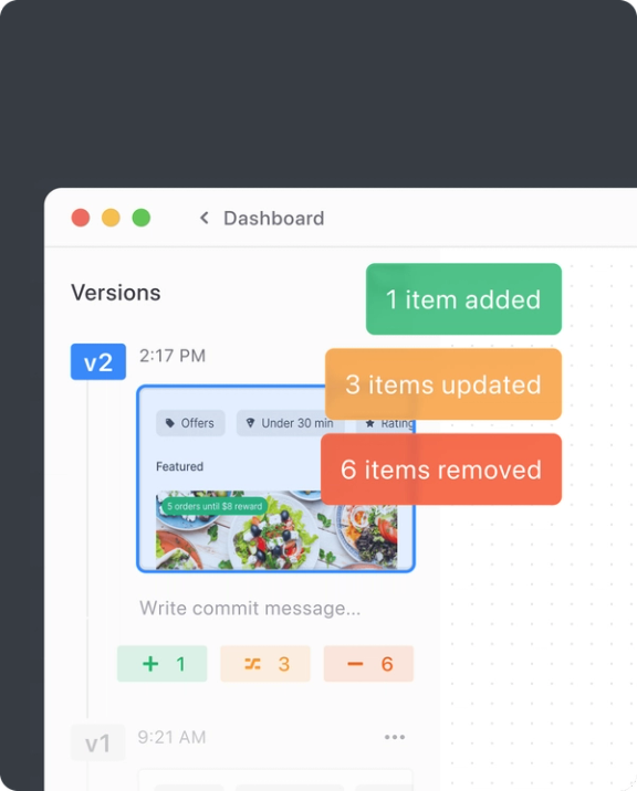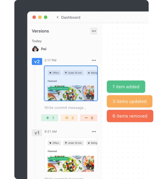 Inspired by Git, Zeplin brings deliberate versioning to design. Each screen has its own version history, capturing changes over time so teams can review and compare when needed.