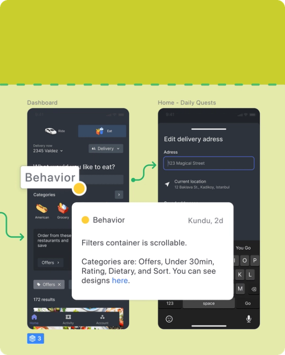 Mockups alone don’t tell the full story. Add notes and requirements directly on the designs so devs understand how things should work, not just how they look.