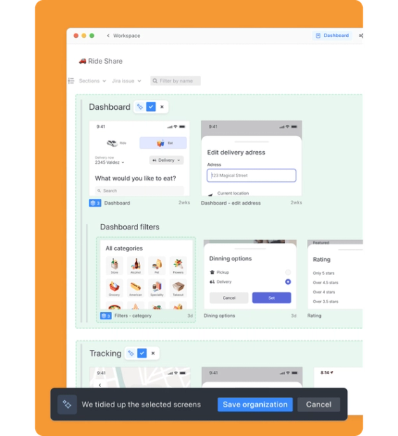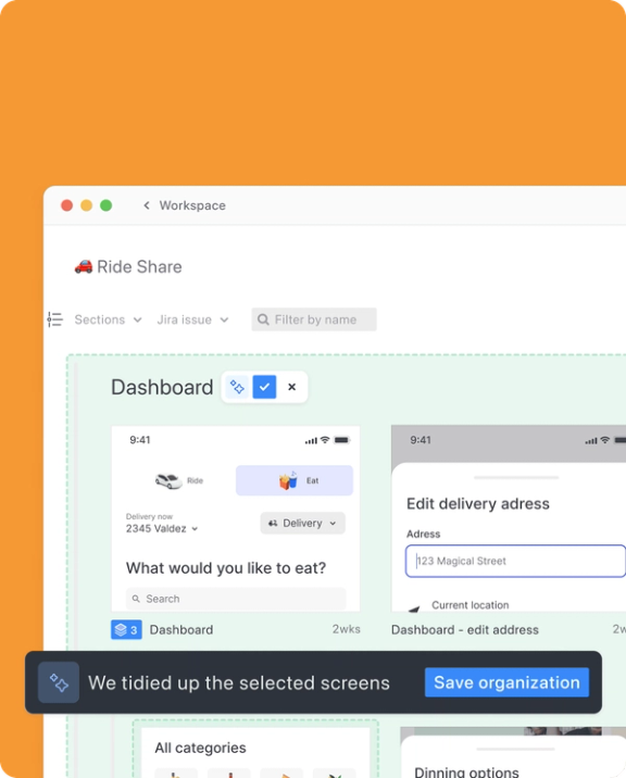 Generates accurate measurements, assets, and code snippets tailored to your team’s dev stack. Connect designs to dev tools like Jira and Storybook to keep everyone in sync.