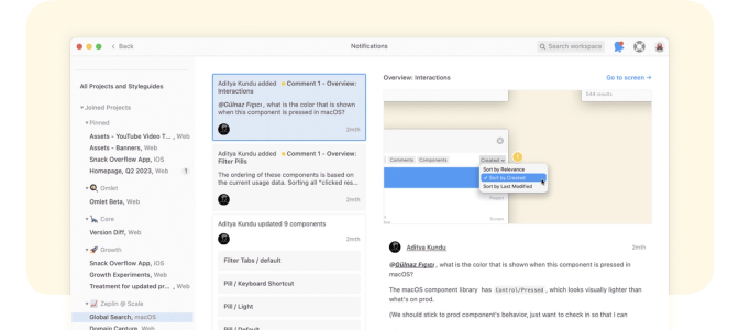For every version published, Zeplin keeps your team updated with automatic notifications in-app, emails, and messages in Slack or Teams.